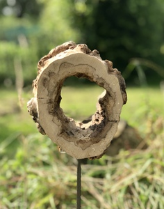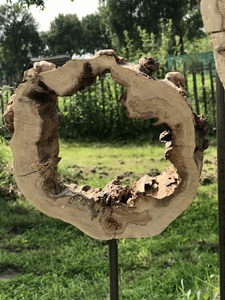 2021Tijdens het snoeien, een holle boom. Er zat een nestje vogels in , ze waren bijna onthoofd. Na het uitbroeden heb ik er schijven van gemaakt en verder niet veel meer aan gedaan. De natuur schitterd al in al zijn glorie.....