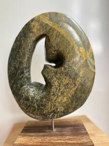 2016Braziliaanse speksteen in mooie gevlamde kleuren. Als vanzelf is dit beeld ontstaan.